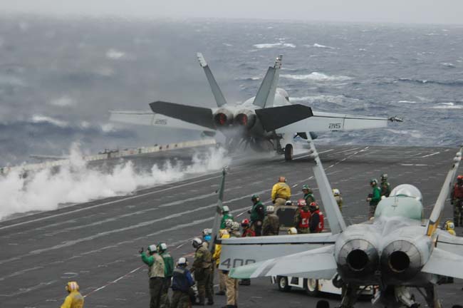 The Kitty Hawk is a Cold War relic, the last conventionally-powered aircraft carrier in the U.S. fleet, the only carrier group based abroad—at Yokosuka, Japan—whose most recent mission was a big joint exercise with the Japanese practicing sinking (presumably Chinese) submarines.