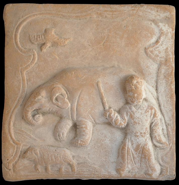extensive horizontal panels inside the tomb vaults themselves. It is possible that this tile is from Sichuan - at the time elephants could be found in neighbouring areas, plus Sichuan was connected to the various trade routes known collectively as the Silk Road.